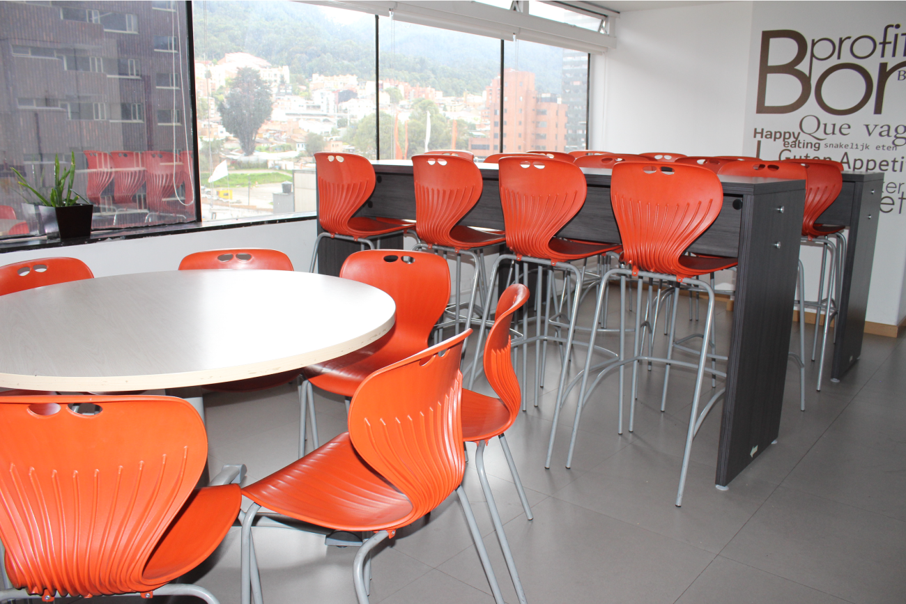 Diseño y fabricación de puestos de trabajo, sillas, zonas colectivas (sala de juntas, espera), auditorios y cafetería.